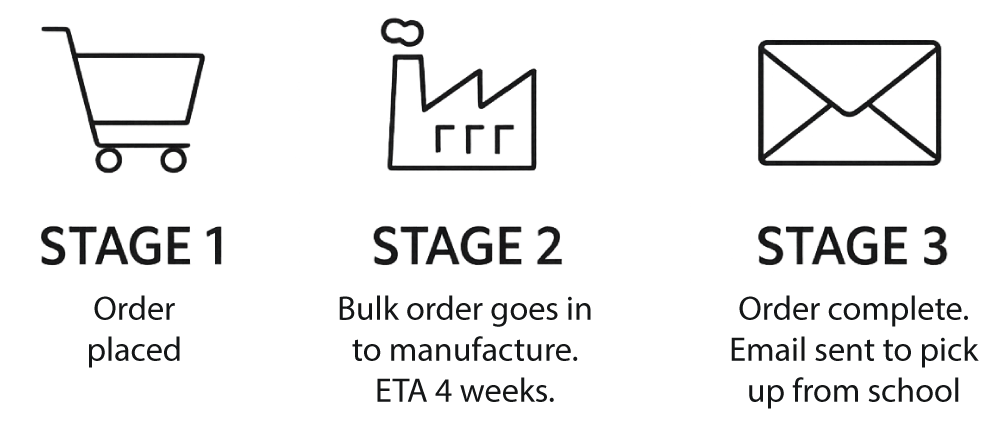 All orders will be delivered to the school 3-4 weeks after last order approximately 4 weeks.